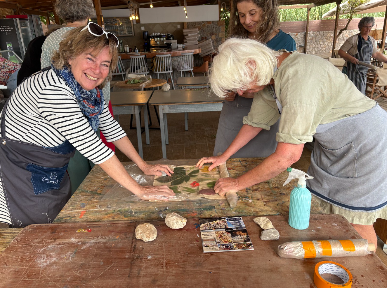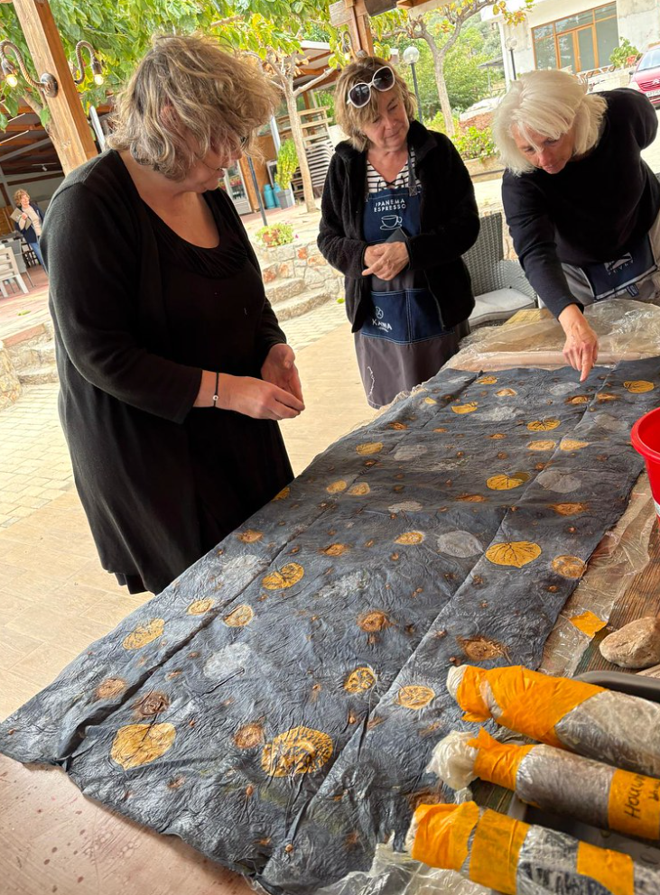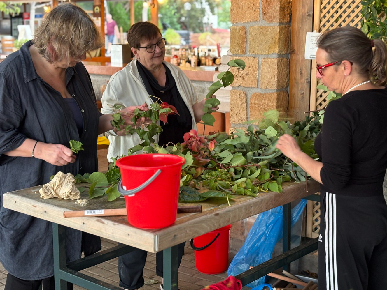 Wij gaan in de omgeving samen op zoek naar plantaardige materialen om tot mooie werken te komen. Er zijn natuurlijk in Griekenland andere verrassende bomen en planten en waar we gebruik van kunnen maken. Naar eigen inzicht of met hulp worden steeds de beste keuzes gemaakt om tot een mooi resultaat te komen.