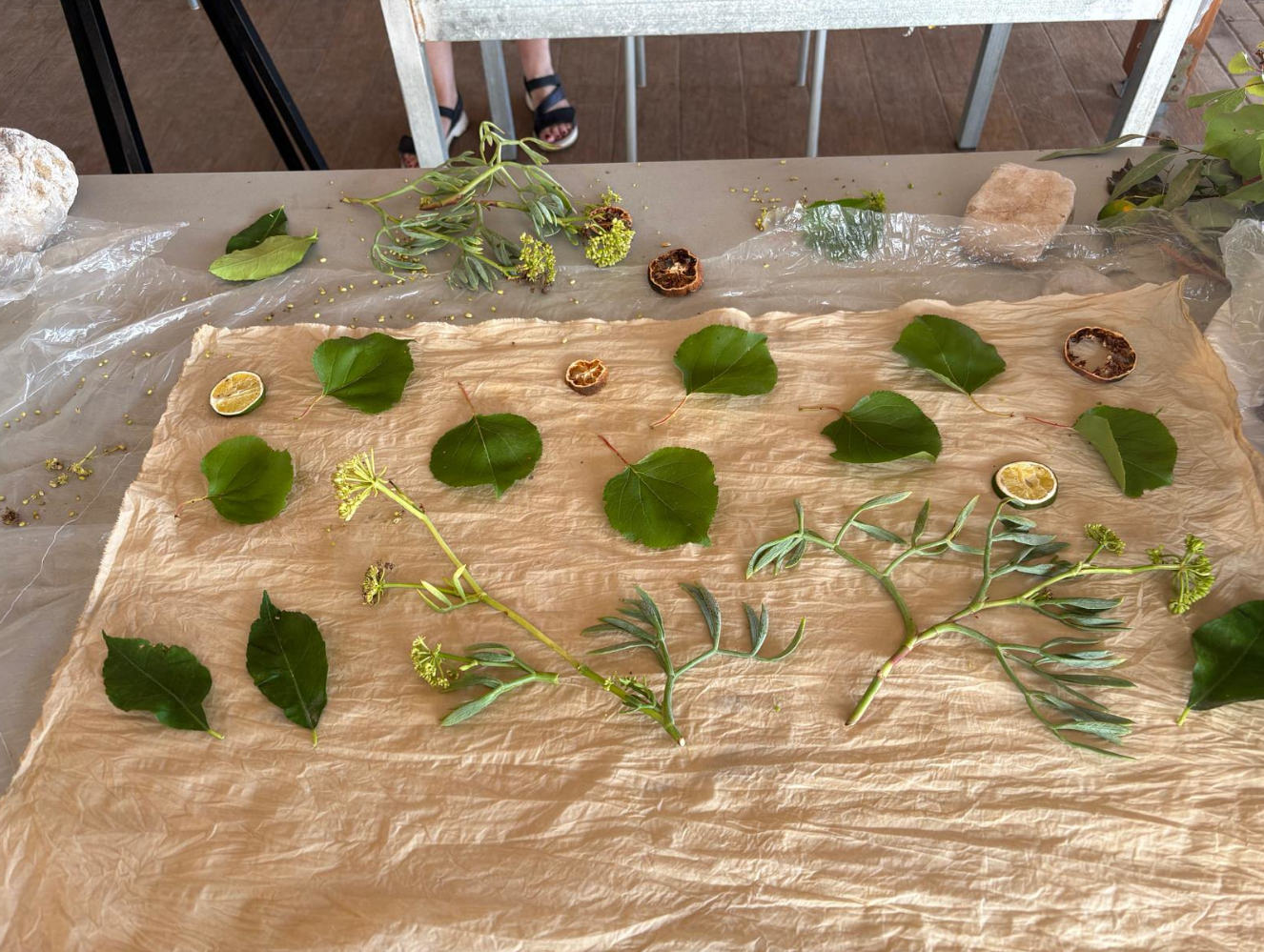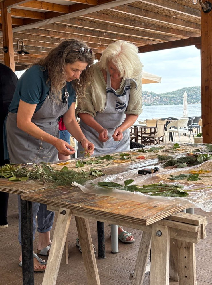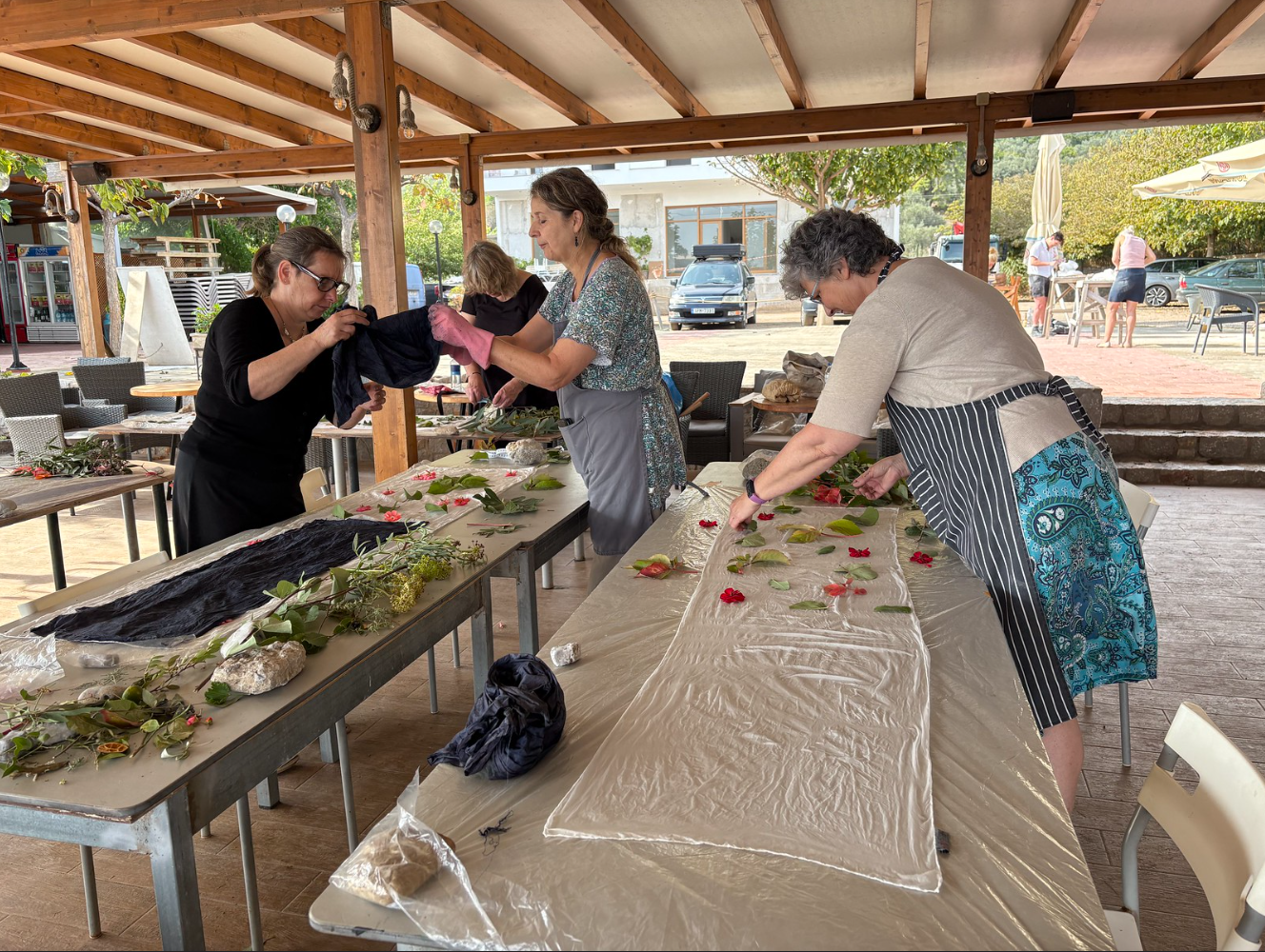 Wij gaan in de omgeving samen op zoek naar plantaardige materialen om tot mooie werken te komen. Er zijn natuurlijk in Griekenland andere verrassende bomen en planten en waar we gebruik van kunnen maken. Naar eigen inzicht of met hulp worden steeds de beste keuzes gemaakt om tot een mooi resultaat te komen.
