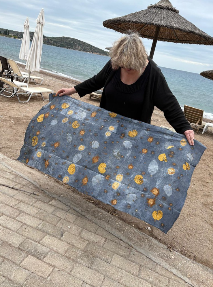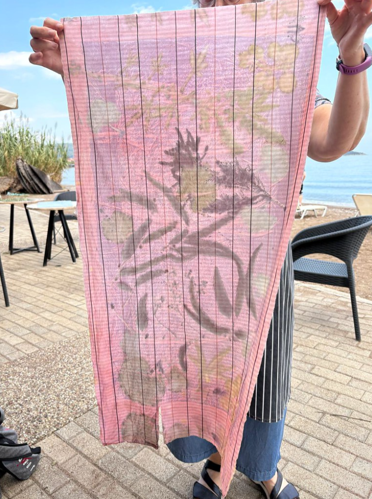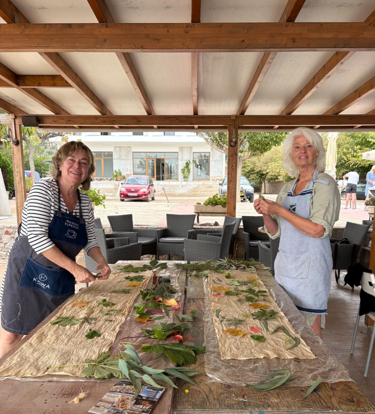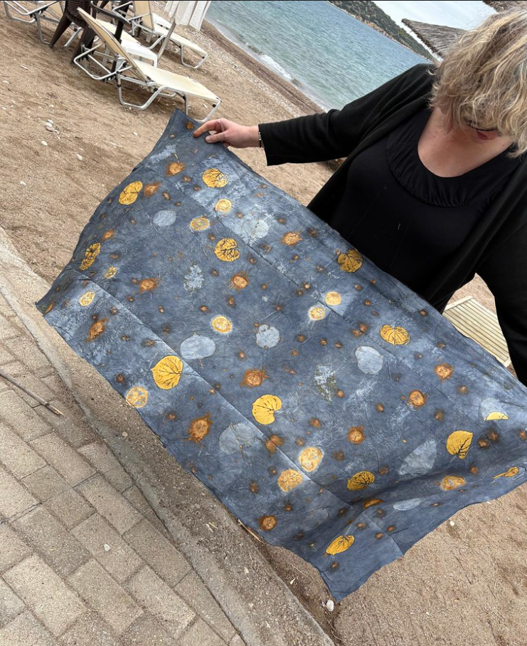 In deze workshop kun je door middel van twee verschillende technieken prachtige prints maken: Ecoprint en Cyanotype. Dat kan zowel op papier alswel op stof. We hebben alle materialen die hiervoor nodig zijn in huis, je hoeft dus niks mee te nemen. Bij Ecoprint zorgt de natuur voor het materiaal om af te drukken, bladeren van verschillende bomen en planten geven elk hun eigen kleur. Bovendien groeien er in Griekenland natuurlijk ook hele exotische soorten: Poëtische verassende afdrukken van de altijd volmaakte natuur.
